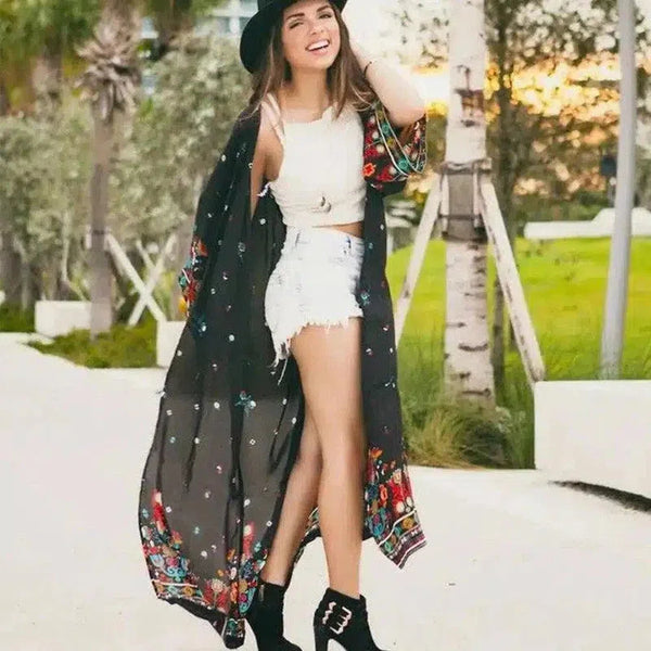 - Tipo de peça de vestuário: Casaco comprido de quimono aberto à frente com top curto a condizer e calções de ganga de cintura alta