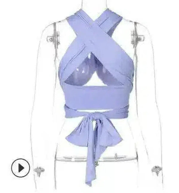 - Estilo do decote ou dos ombros: Decote halter cruzado