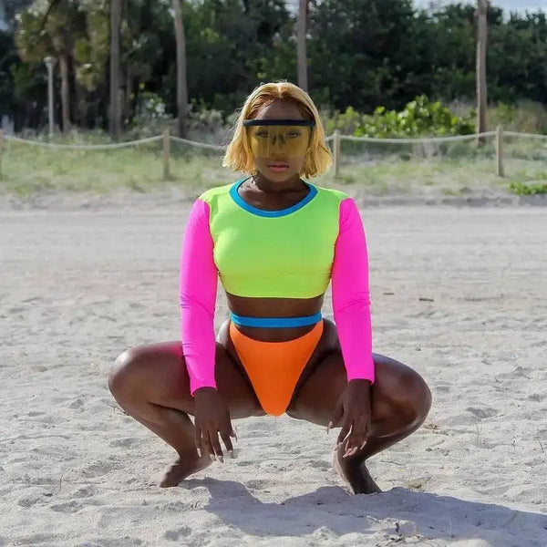 Fato de banho com decote em cores contrastantes da moda europeia e americana