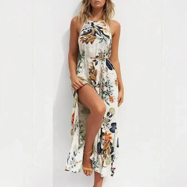 Vestido de praia comprido estampado em algodão com funda europeu e americano