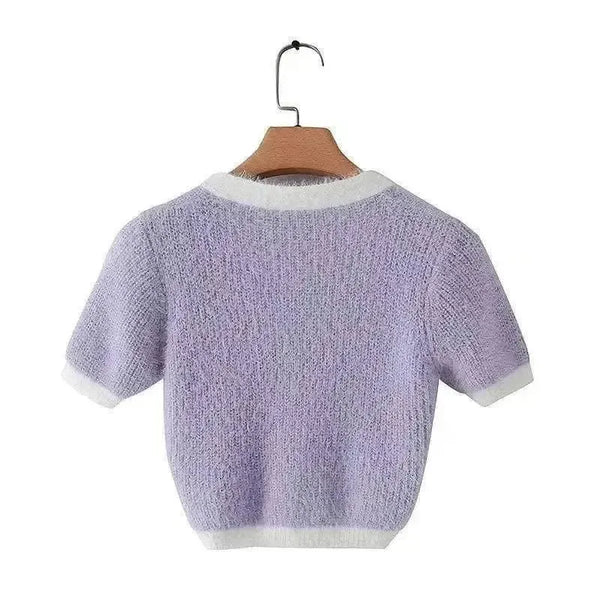 Camisola de malha de manga curta para mulher