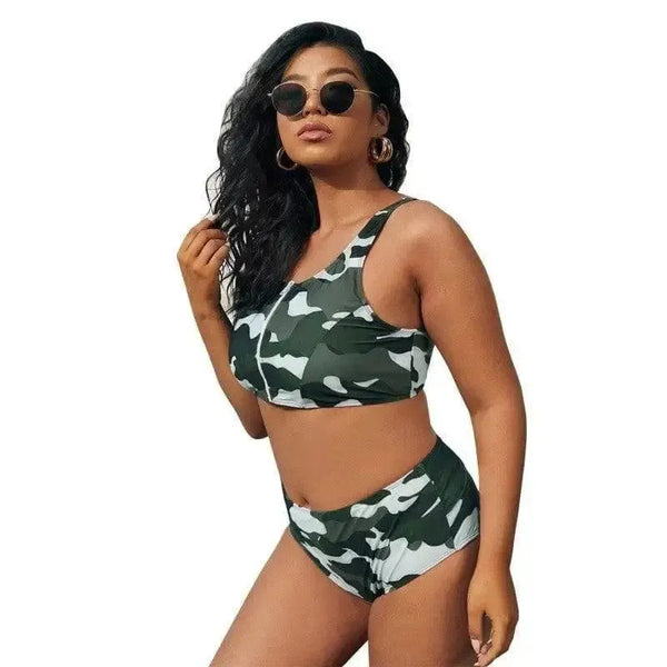Moda Plus Size Camuflagem estampada com fecho de correr