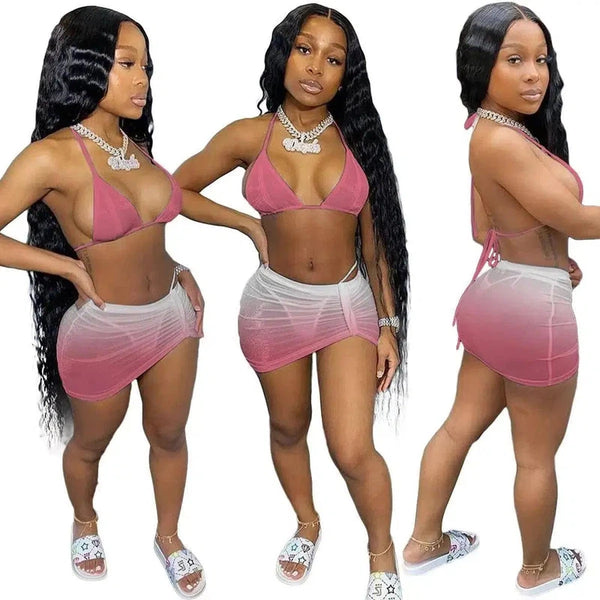 Moda verão Biquíni Gradiente Fato de banho com decote haltere