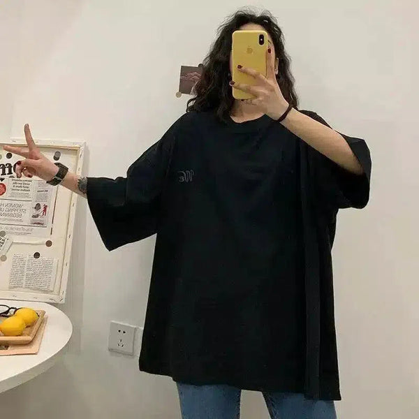 T-shirt de algodão de tamanho grande com pormenor nas mangas