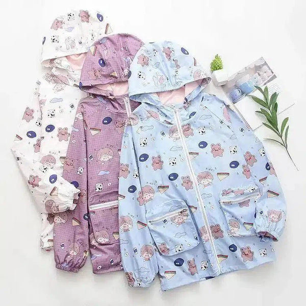 Capa de chuva com capuz para criança com estampado de desenhos animados