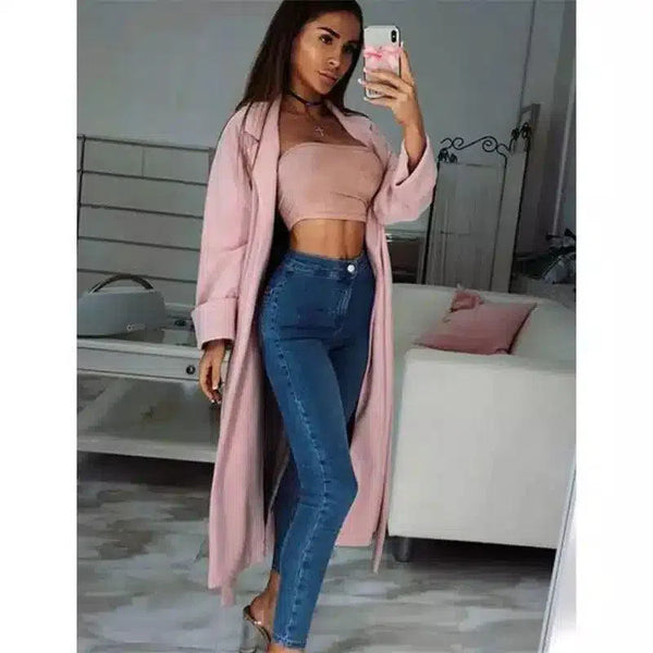 - Decote ou estilo de ombro: Frente aberta com uma gola xaile descontraída