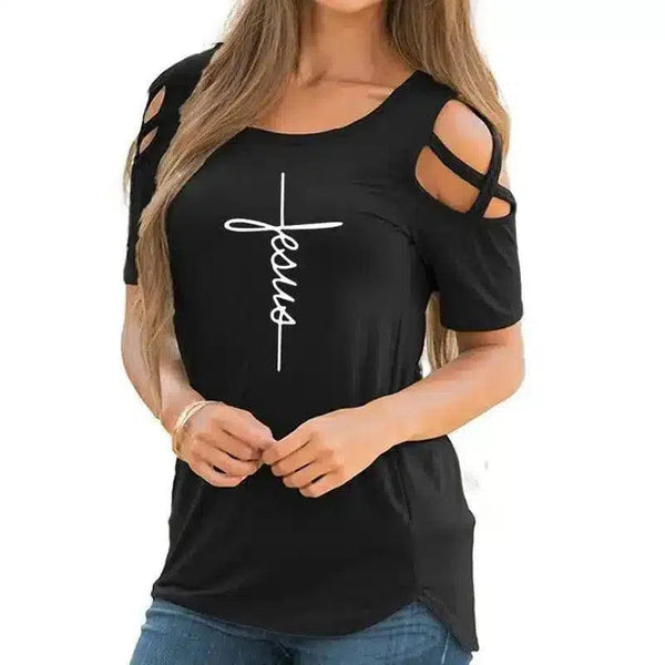 T-shirt casual com corte no ombro para mulher