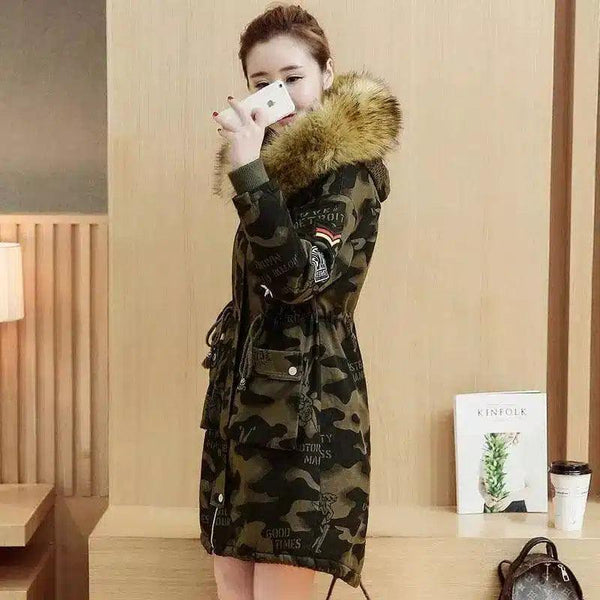 Casaco acolchoado de algodão espesso, gola de cabelo para mulher no inverno