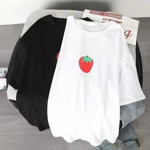 T-shirt casual de algodão com adornos de frutos