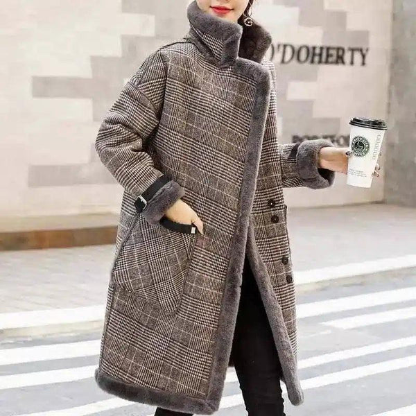 Casaco de lã de comprimento médio, grosso e de veludo, de temperamento coreano