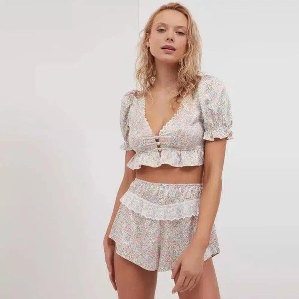 - Tipo de peça: Conjunto de duas peças que inclui um top cropped e calções a condizer