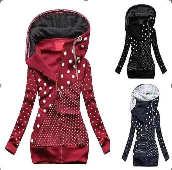 - Opções de cores arrojadas: Disponível em opções de cores impressionantes, cada capuz é adornado com bolinhas brancas nítidas que se destacam contra o fundo vibrante.