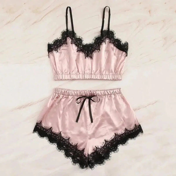 Conjunto de sutiã de lingerie para mulher Roupa de dormir com alças sem mangas