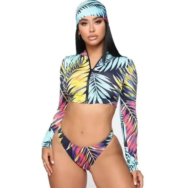 Manga comprida com fecho de correr à frente e gola alta para senhora