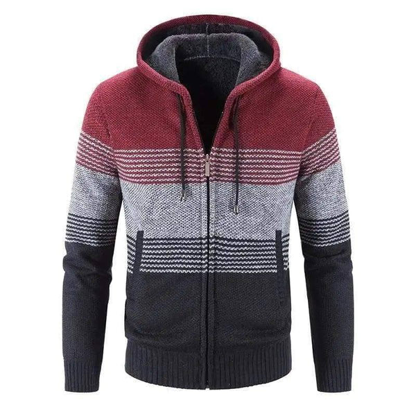 Casaco com capuz de riscas Cardigan masculino Lã com fecho de correr grosso