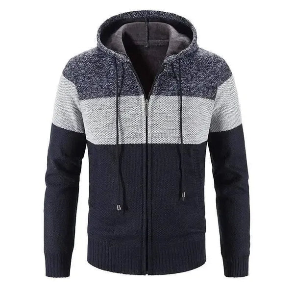 Camisola para homem Camisolas de lã com fecho de correr grosso Casaco de riscas com capuz