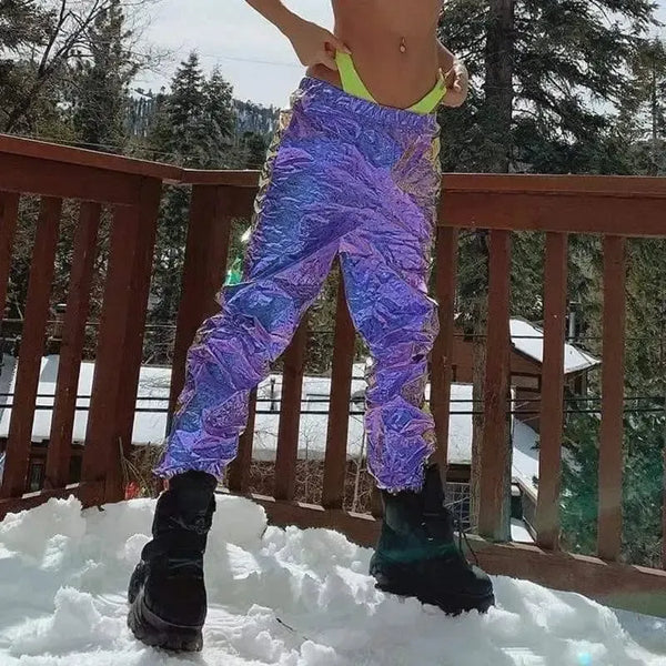 Calças hip hop streetwear com gradiente Coreano roxo para mulher