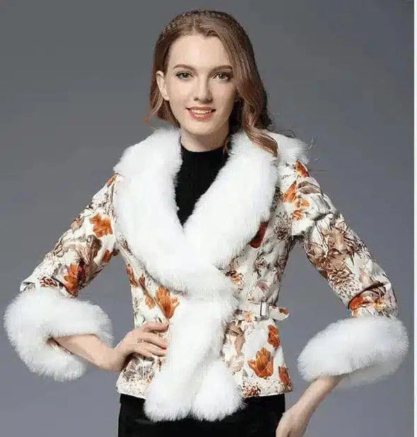 - Decote: Gola de pele de pelúcia com um estilo envolvente