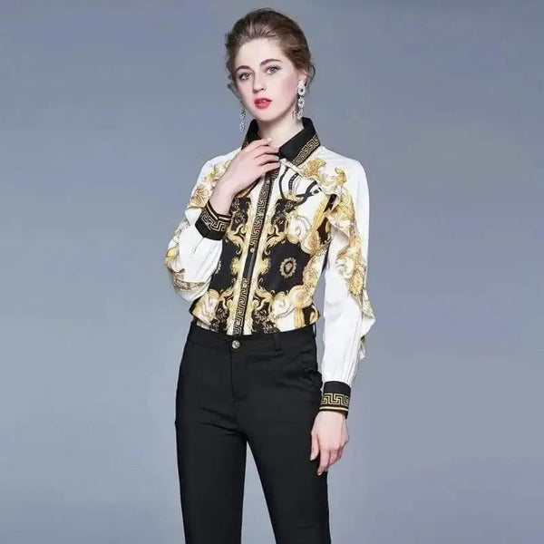 Camisa com estampado Retro Palace com folhos e ajuste fino