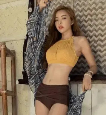 - Estilo: Conjunto de três peças na moda, perfeito para a praia ou à beira da piscina