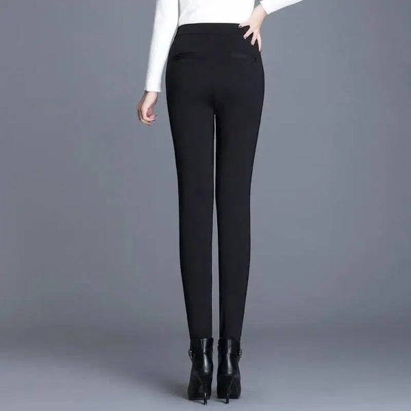 calças de inverno de veludo de cordeiro elástico para mulher