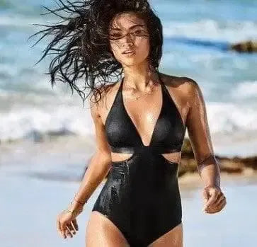 - Design: Biquíni de uma peça de inspiração vintage com um corte triangular