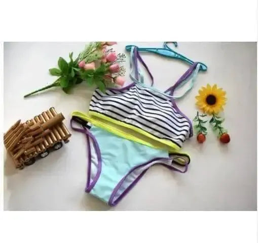 Conjunto de biquíni com decote alto e patchwork Conjunto de biquíni de banho