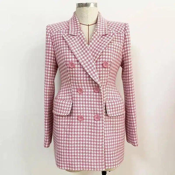 Casaco de lã rosa com padrão Houndstooth Retro e trespassado