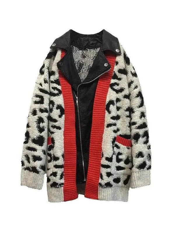 - Bloqueio de cores vibrantes: A jaqueta apresenta detalhes em vermelho vibrante ao longo da linha do zíper e dos punhos, infundindo um toque de cor que contrasta lindamente com o padrão animal monocromático.