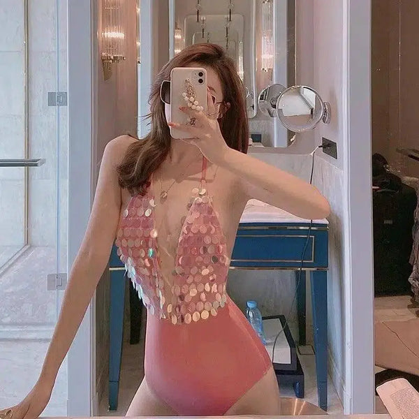 Sem lantejoulas V profundo com franjas Moda Halterneck