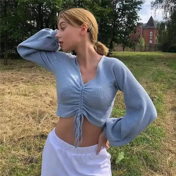 Top azul claro com pregas - elegante e confortável
