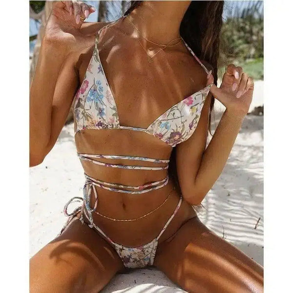 Descrição do Produto: Fato de Banho Split - Fato de Banho Floral Corda Longa