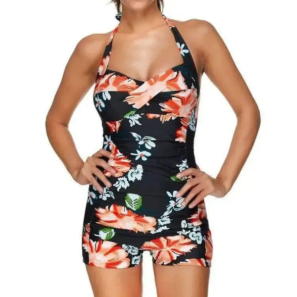 Fato de banho de verão com decote em V e uma peça plissada para mulher