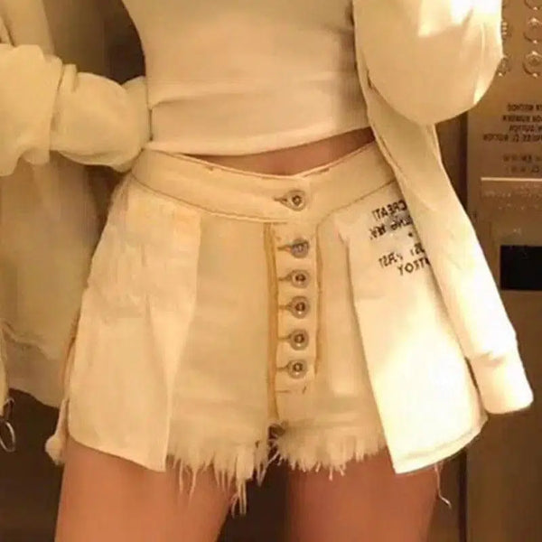 verão nova rede vermelha botão de letra cintura alta dois lados desgaste