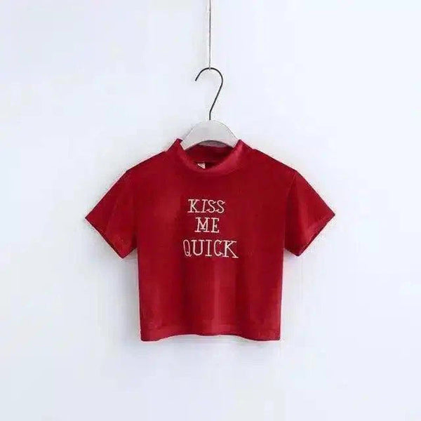 T-shirt com corpo e fundo justos, gola alta, bordado