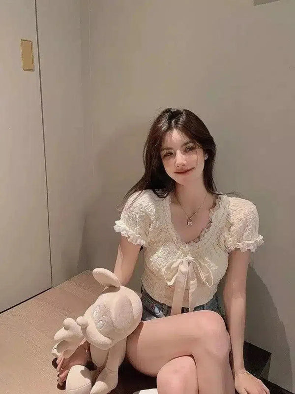 Camisa de renda de um ombro só Chiffon Feminina verão