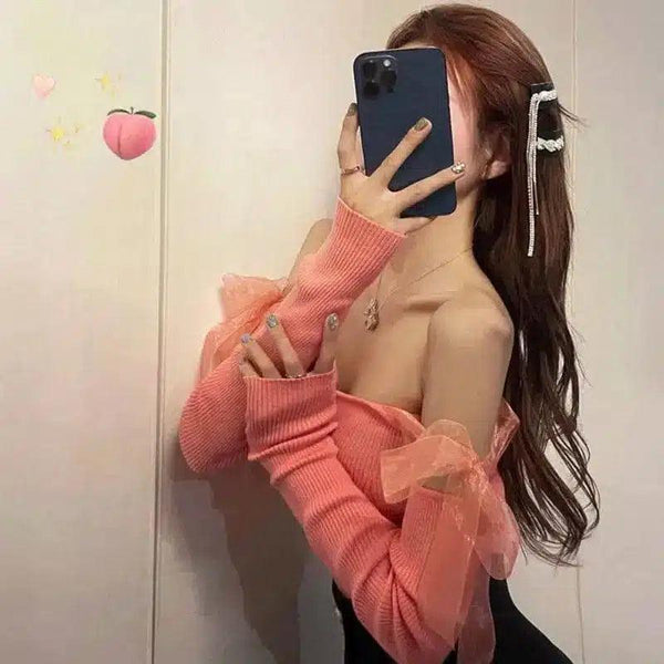 - Estilo do decote ou dos ombros: Decote largo sem ombros com detalhes em tule transparente