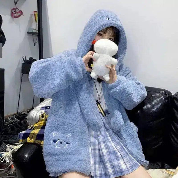Urso Casaco de lã de cordeiro Mulheres inverno Pelúcia Orelhas de pelúcia soltas