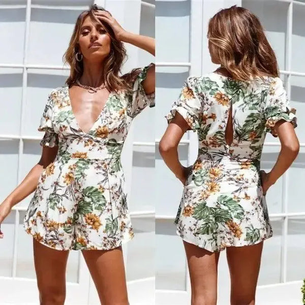 Vestido adelgaçante feminino com decote em V e cintura floral