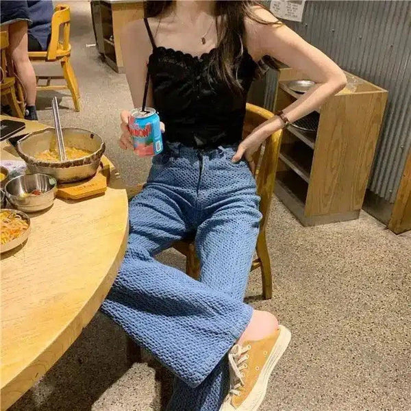 Calças casuais texturizadas de cintura alta para mulher