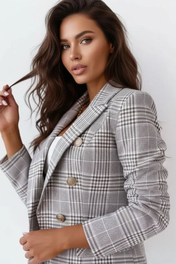 Blazer xadrez de manga comprida de manga comprida para mulher