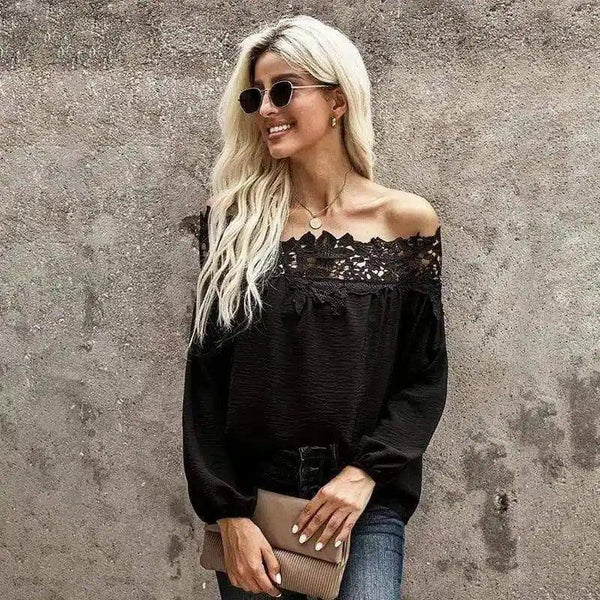 Blusa feminina sem ombros com acabamento em renda