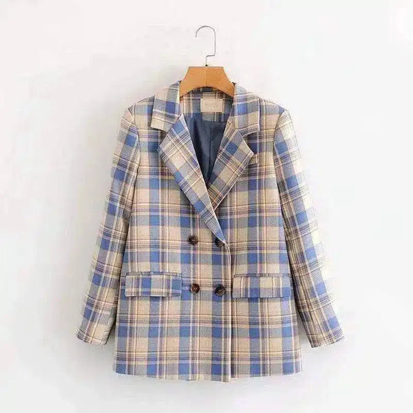 Blazer xadrez com duplo peito para mulher