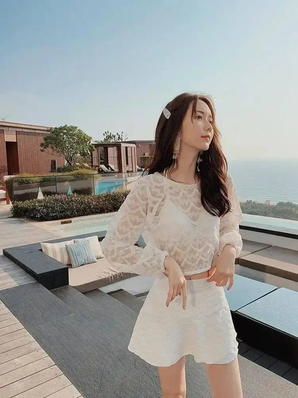 Fato de banho de renda de três peças para mulher