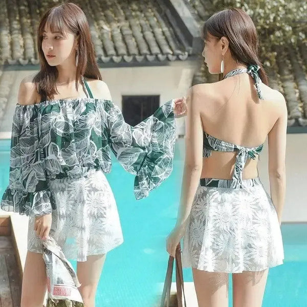 - Componentes: Inclui uma parte superior de biquíni de suporte, parte inferior de cintura média e uma cobertura elegante.