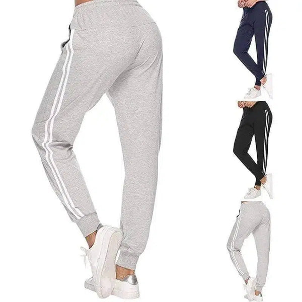Descrição do Produto: Leggings desportivas femininas de duas barras com acabamento branco