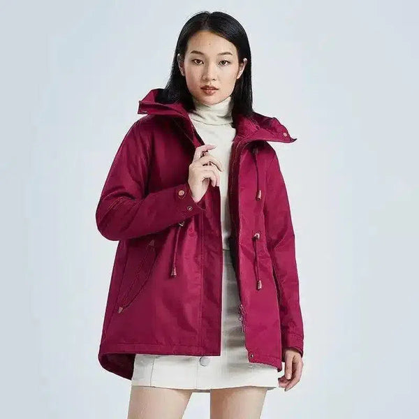 - Estilo do decote ou do ombro: Decote alto com um capuz destacável