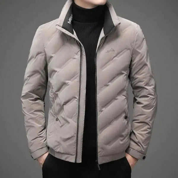 Casaco de penas para jovens com lapelas curtas e acolchoadas para manter a tendência quente