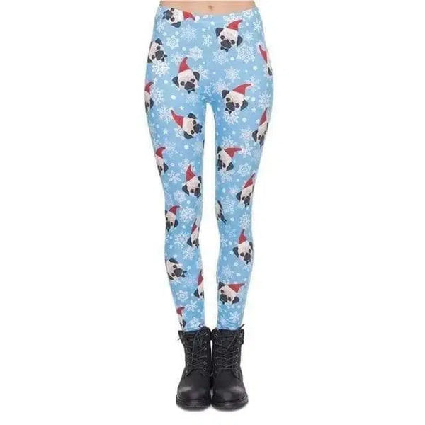 Zohra Legging Feminina de Alta Elasticidade Santa Pug Printing Azul
