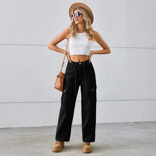 Macacão de ganga com cordão Ajustável Lavado Casual Mulher